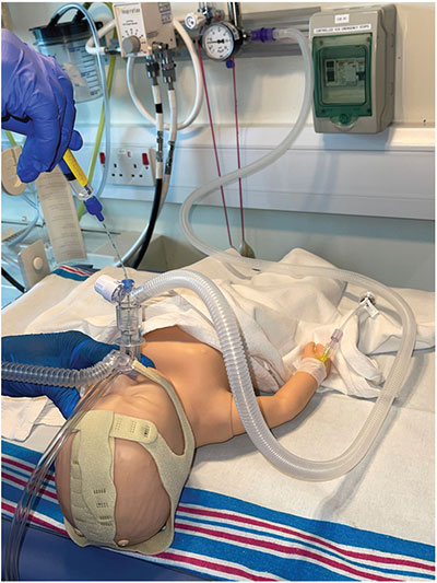 The procedure for surfactant adminis-tration through the i-gel supraglottic airway device was introduced on the unit in March 2021 following staff training and awareness (FIGURE 2). A guideline for the administration of surfactant via i-gel was developed prior to the introduction of this procedure based on the NHS Greater Glasgow and Clyde (NHSGGC) Surfactant Administration via Laryngeal Mask Airway Standard Operating Procedure.5 A full description of the procedure is available on NHSGGC guidelines website and is not repeated here.5 Data were collected prospectively using an audit form.
