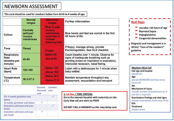 FIGURE 1 The newborn assessment tool developed in the London Ambulance Service to standardise and support the pre-hospital assessment of newborn babies at birth.