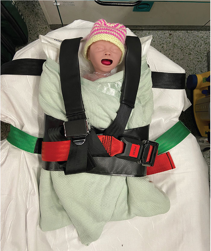 FIGURE 3 Premature baby (manikin) in the NeoMate harness.