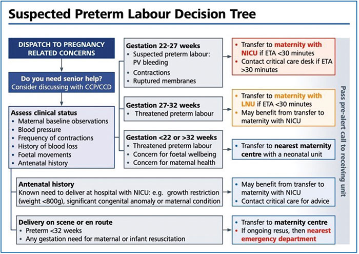 FIGURE 4 The SECAmb suspected preterm labour decision tree.
