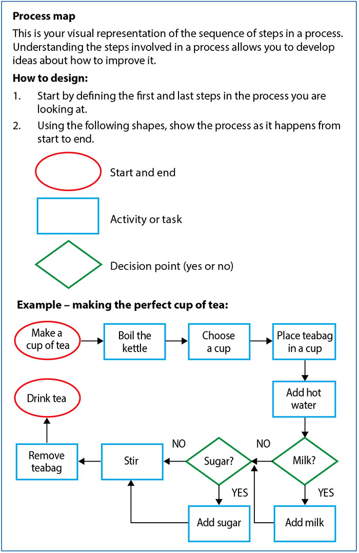 Simple, common examples of processes such as ‘making a cup of tea’ or ‘baking a cake’ are used in the toolkit (FIGURE 1) and a six-monthly delivery of face-to-face teaching by the QI programme lead, to illustrate the ways in which these methods can be utilised.