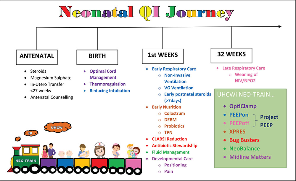 The NEO-TRAIN QI educational initiative was developed and introduced in September 2020, aiming to create a robust, structured, sustainable evidence-based programme to support change on the neonatal intensive care unit at University Hospital Coventry and Warwickshire (UHCW).