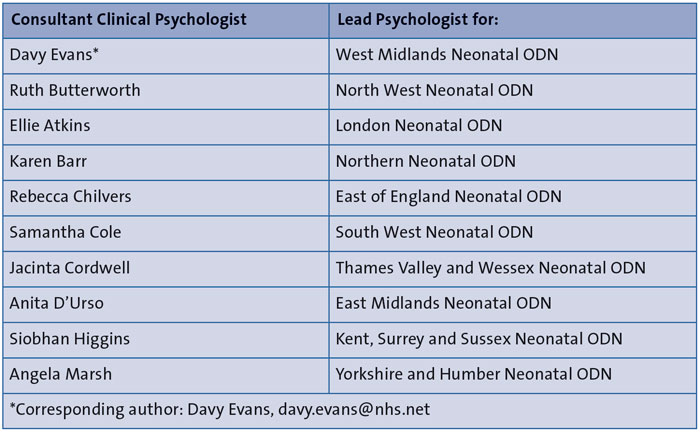 TABLE 1 This report was produced by the Consultant Clinical Psychologists listed in their roles as Psychology Leads for the Neonatal Operational Delivery Networks (ODNs) across England.