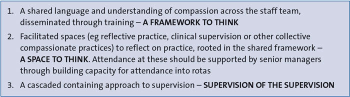 One key practical implication of this is that compassion is not something that we practise in isolation. There is a need for approaches across all levels of the system to bring about cultures of compassionate care.