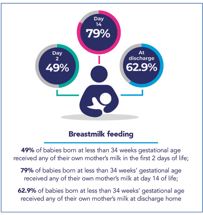 Variation persists in rates of key outcomes of neonatal care, ie mortality, bronchopulmonary dysplasia (BPD), necrotising enterocolitis (NEC) and bloodstream infection. This variation is not new but is a matter of concern. This variation is seen between units and between networks and is seen even when measured background characteristics are accounted for. For example, rates of mortality in very preterm infants range from 4.8-8% between neonatal networks. Furthermore, the overall rate of BPD or death is rising in very preterm infants (2015-2017=36.3%; 2020-2022=39.7%, p< 0.001), rather than the desired decrease over time. There is a need and an opportunity to deliver significantly improved outcomes for babies if the poorest performing networks across each measure improved to the level of the best performing networks.
