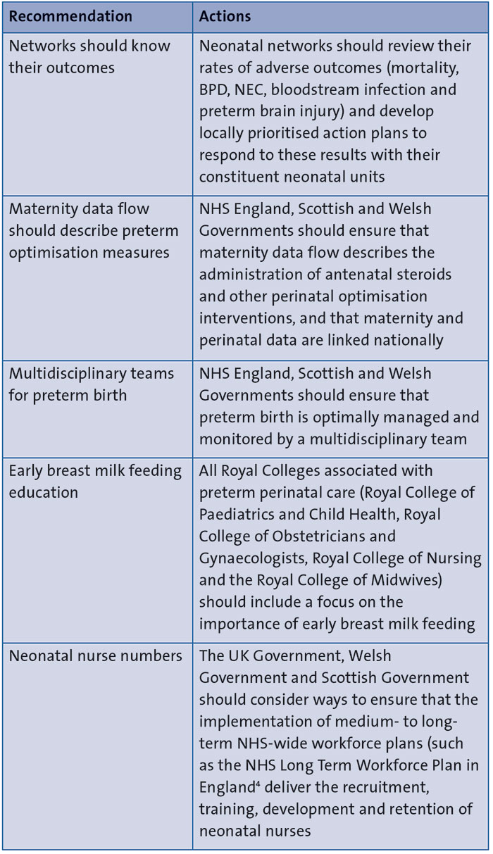 TABLE 1 gives a summary of the main report recommendations. Full national recommendations and actions for local QI can be found in the summary report.2 The report webpage includes a range of other resources such as the extended analysis and recommendations table.