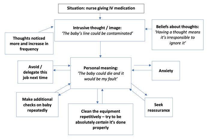 Neonatal professionals can also be considered to have a very high level of responsibility for the vulnerable infants they care for. FIGURE 2 outlines some examples from neonatal units. The context of having personal responsibility for an outcome enhances the meaning of intrusive thoughts.13 There is evidence that some people in professional roles with high levels of responsibility towards others in their care, such as medics, pharmacists and other healthcare professionals, are also prone to intrusive thoughts and may get caught in these cycles.14