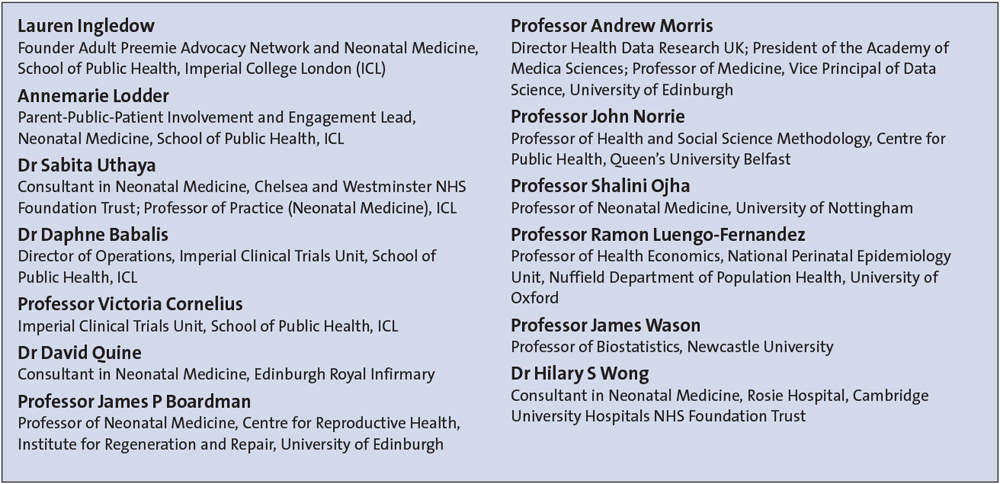 We are grateful for the support we have received from parents, patients, organisations and neonatal teams across the UK; funding from the National Institute for Health Research; the expertise of Rahi Jahan, Alex Baker, Rosalind Way and other staff at the Imperial Clinical Trials Unit, and programme manager Dr Ricardo Ribas.