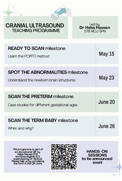 Offering practical skills training, particularly cranial ultrasound scanning, in a structured, flexible format is essential for addressing critical gaps in procedural practice and providing an opportunity for clinicians to gain confidence and proficiency in performing and interpreting cranial ultrasound. Implementing structured training and rigorous quality assurance protocols in cranial ultrasound ensures consistent high quality imaging, reinforces clinician competency, reduces inter-operator variability in interpretation and strengthens confidence in clinical decision-making.