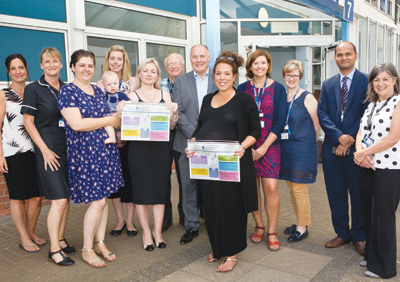 Pregnant Alisha Fianda with colleagues from Ipswich Hospital's maternity team and the Jude Brady Foundation.